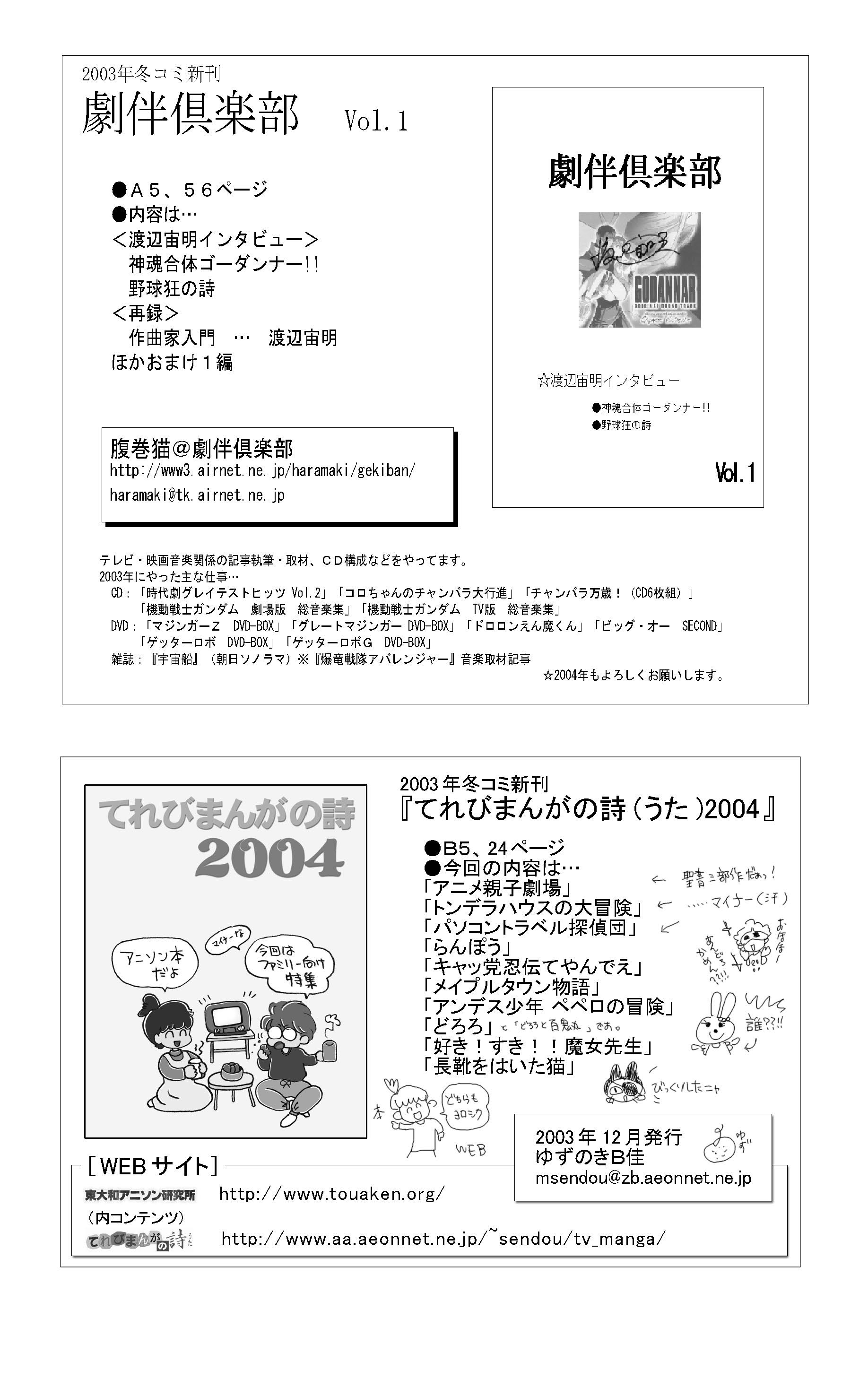 2003年のコミックマーケット65にいっしょに(合体)参加したゆずのきB佳さんと腹巻猫が共同で出したペーパーです。
