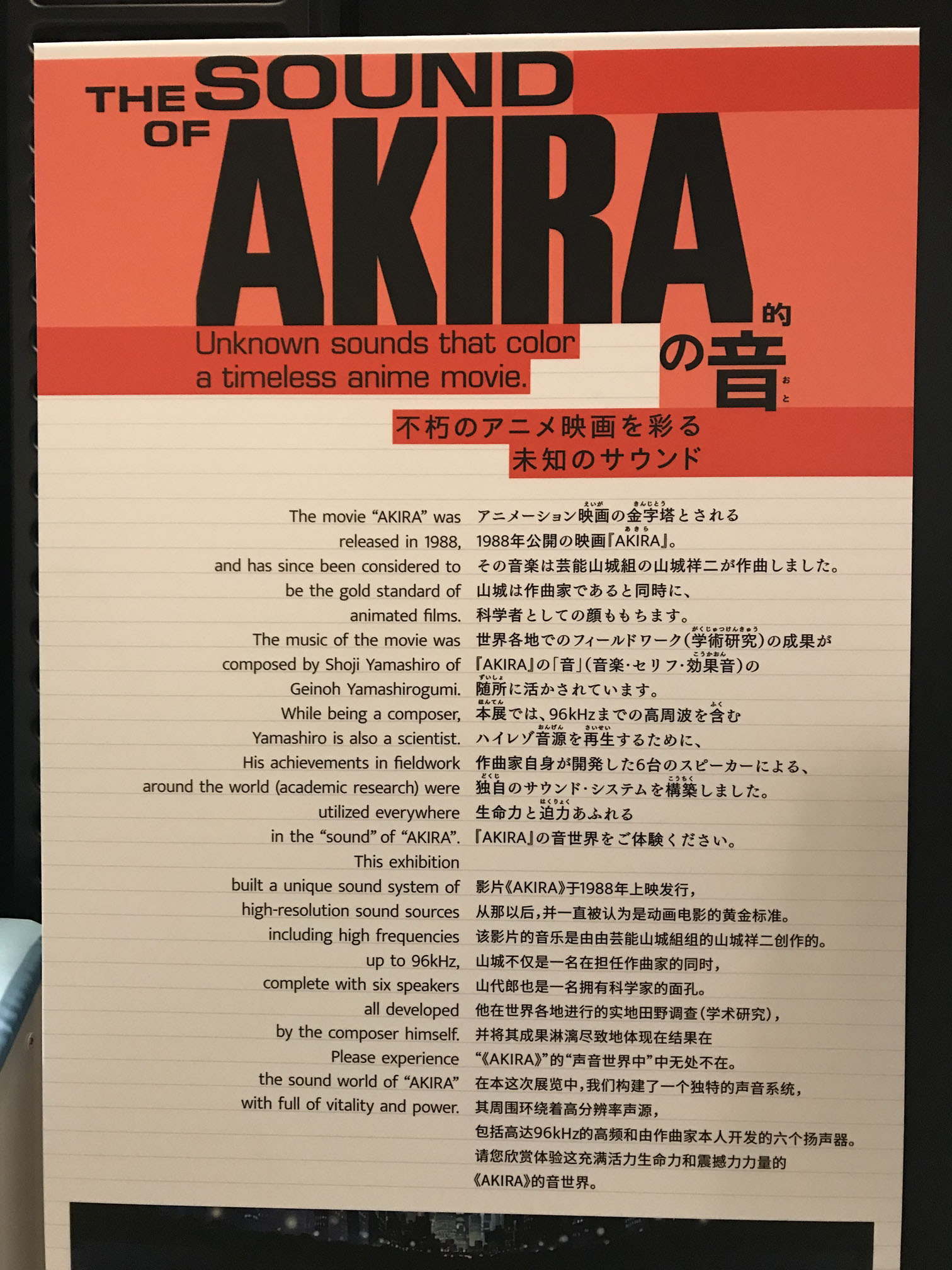 アニメ映画『AKIRA』(1988)の音楽を紹介する異色の展示です。